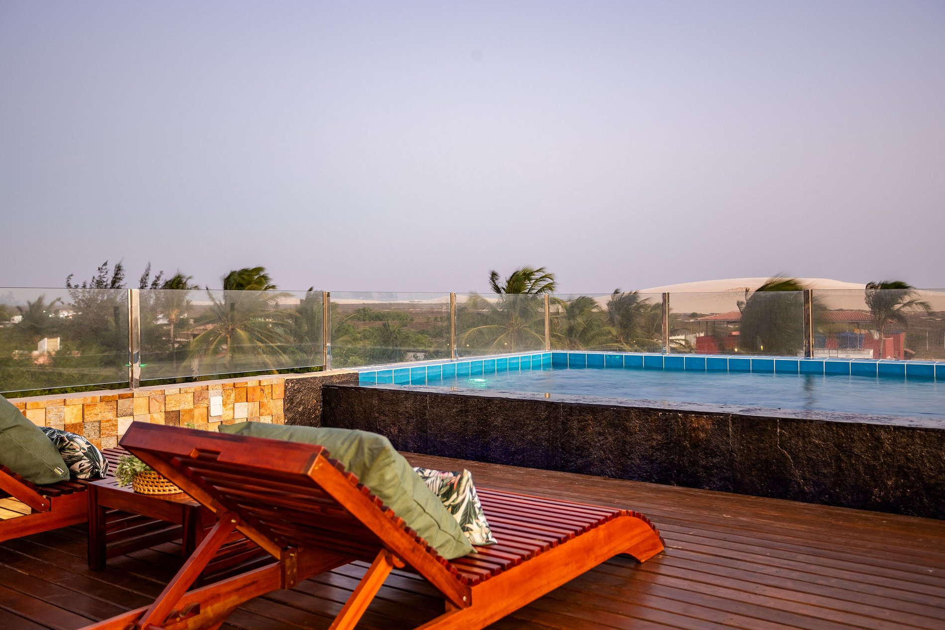 Desfrute de uma suíte exclusiva. Relaxe no jardim ou aproveite a piscina (compartilhada) com vista incrível para as dunas, o mar e o céu de Jeri. No rooftop enquanto contempla o pôr do sol.
